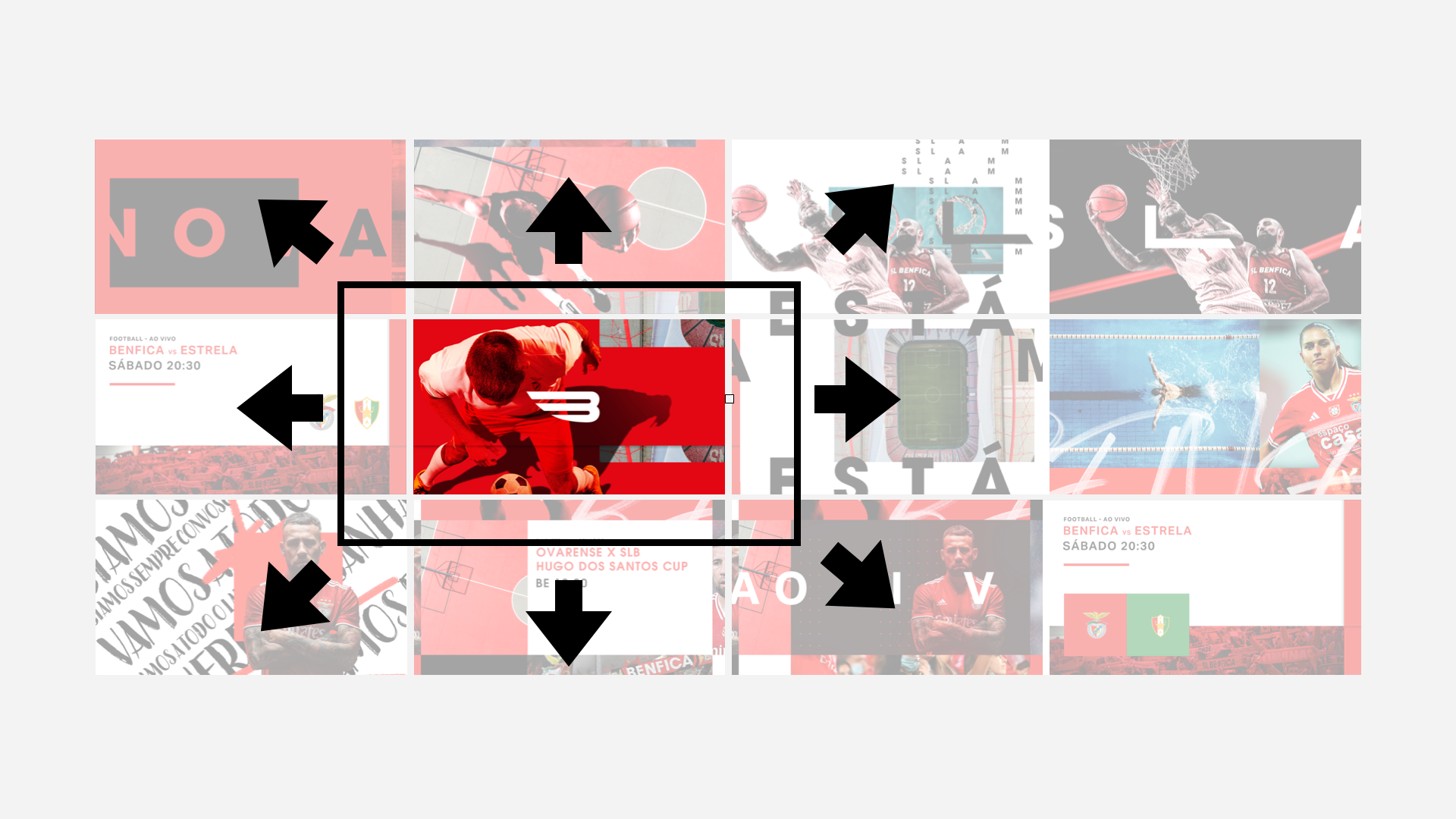 A brand identity and design system for Benfica FC TV channel created from the unique perspective of their Eagle mascot.