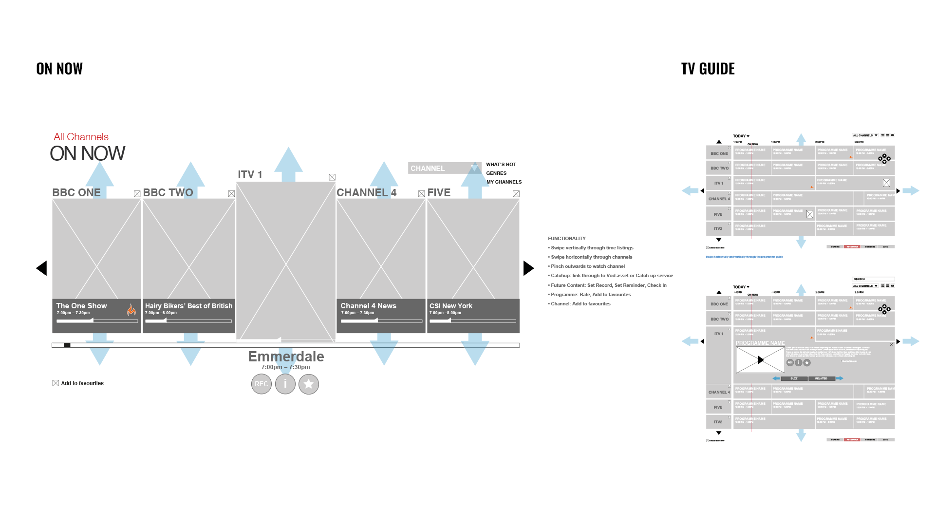 Defined a gesture-based user experience that allowed user to control and change their viewing experience based on their visual preferences - integrating editorial, personal and social recommendations and search across web, mobile and connected TV’s.
