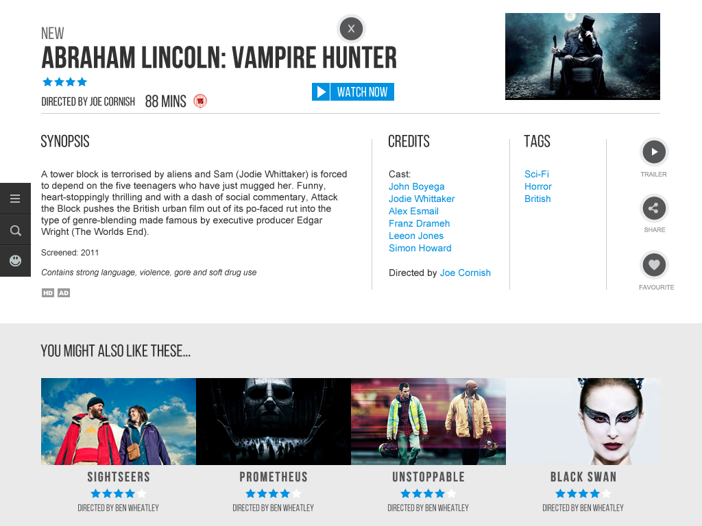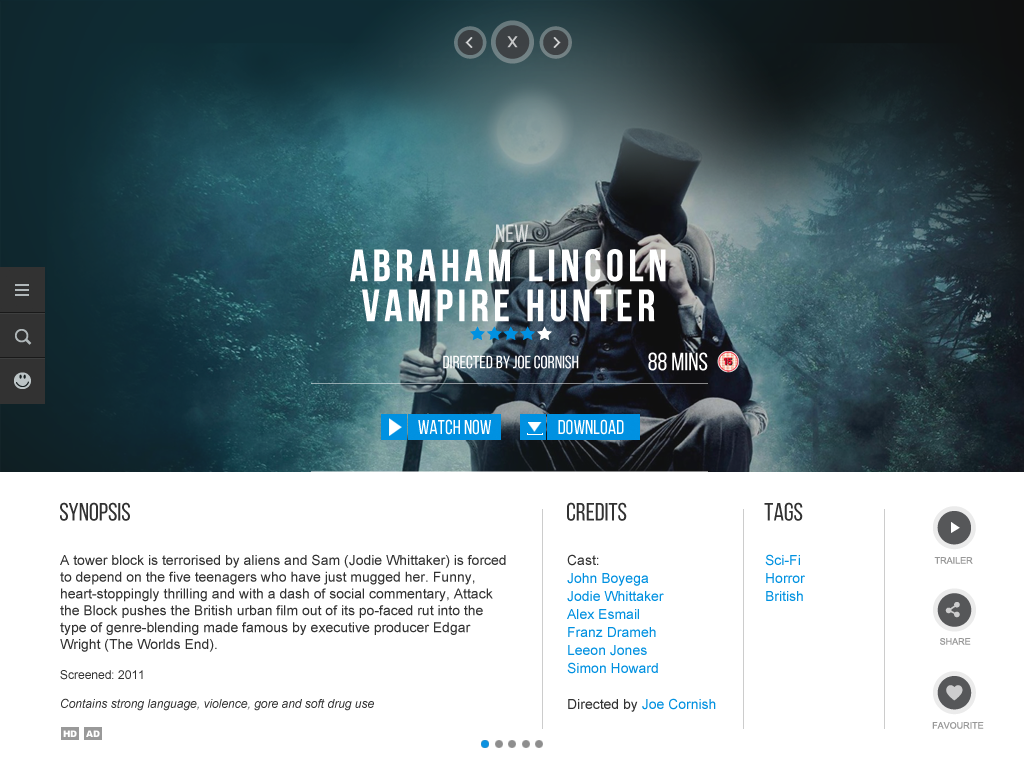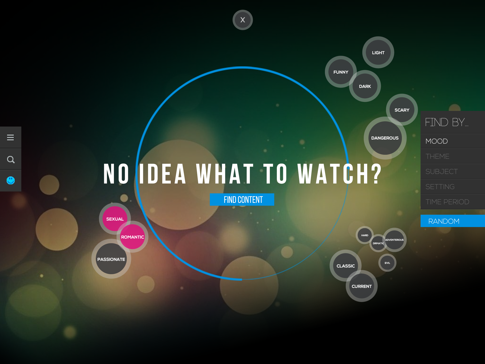 Bespoke content discovery component allowing users to find content by selecting genres, moods, themes, actors and time - creating unique combinations of filters to enhance and expand their video recommendations.