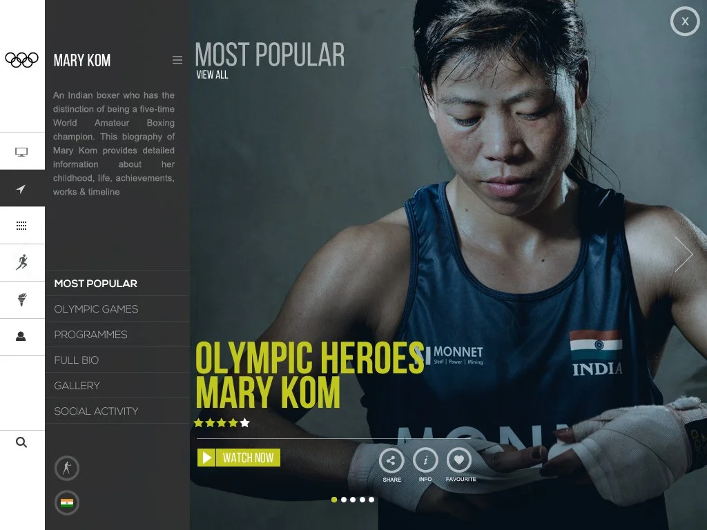At any point, the UI & UX exposed users quickly to the depth of content available via the IOC’s back catalogue through the use of extended metadata and defined content connections.