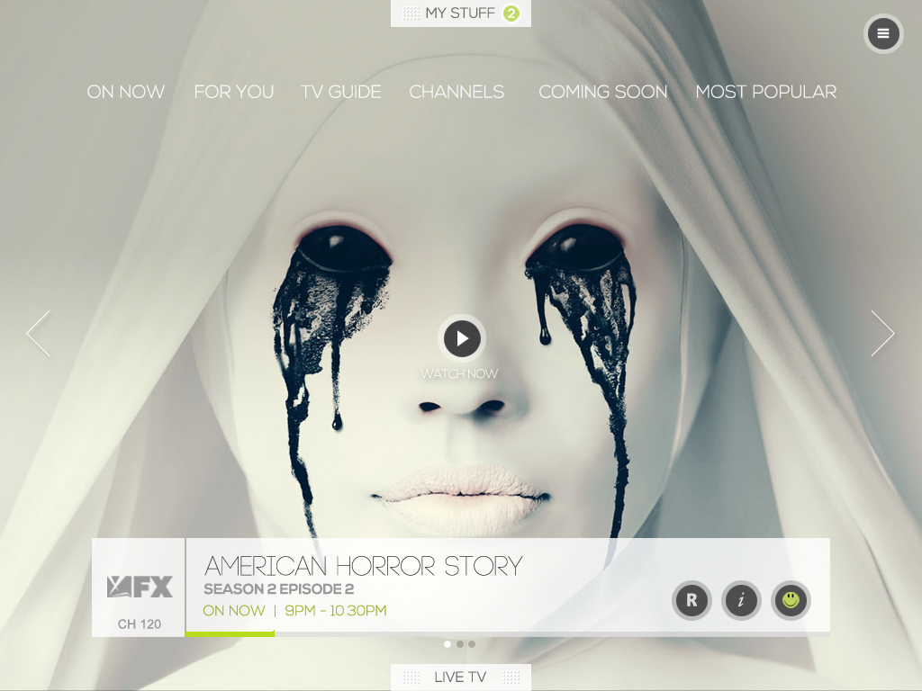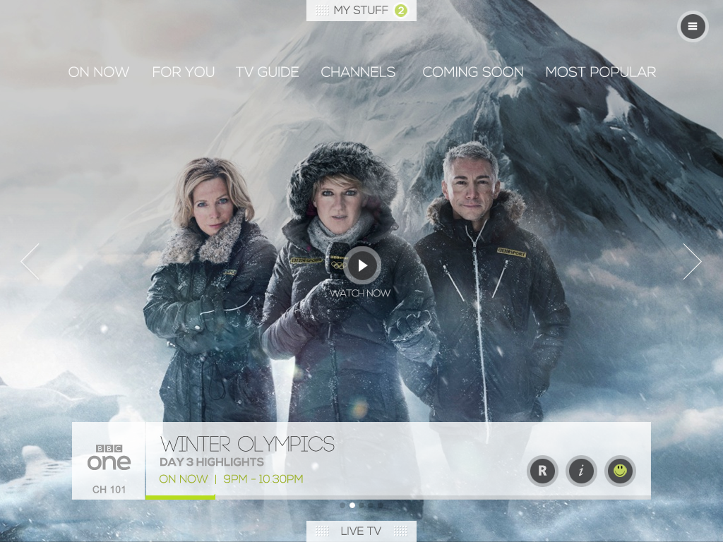 Design and build of a Live TV and VoD based player with a UX paradigm that allowed the users to discover the content available in an intuitive and engaging way and seamlessly switch to live TV at any point within the app.
